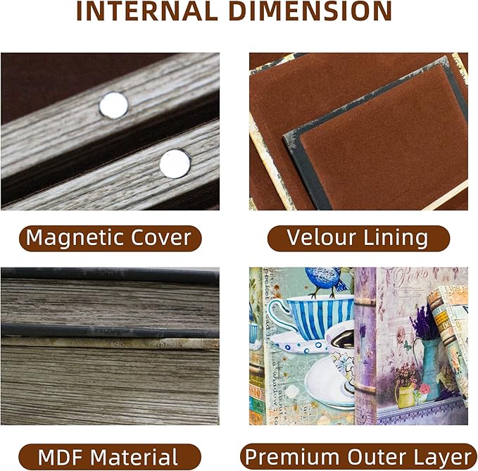 - This decorative book box is made of MDF and has a lid with a magnetic snap to prevent the contents from falling out. The interior of book box is lined with fleece, and the whole book box is high-end and beautiful.It is the best choice for Christmas gifts