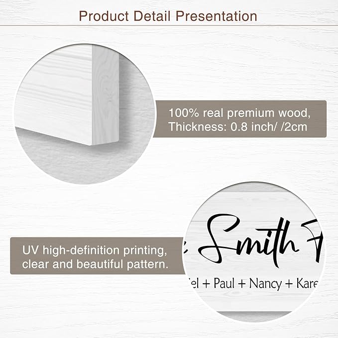 - 👪 Manufacturing Process and Features -- The wooden board is cut, carbonized and machine painted to make a standard product, and then use the most advanced UV technology to print the customized personalized design on the surface of the wooden board. Even if exposed to water or sunlight, printing and paint are not easy to peel off and discolor