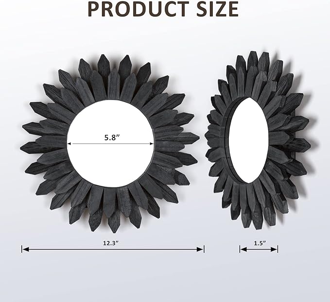 Honiway Black Wall Decor Wall Mirror 12 inch Boho Wall Decor Wood Decorative Mirror for Room Decor Home Decor for Bedroom Living Room Bathroom Kitchen Black