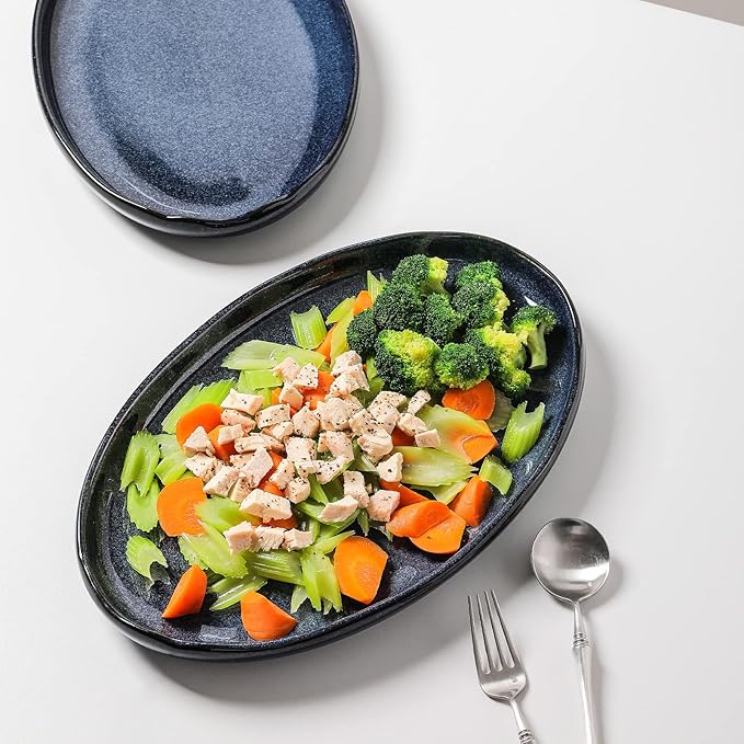 - MICROWAVE OVEN PROOF: These serving trays are made of durable porcelain, chip-resistant and more sturdy than stoneware, oven safe to 590°F, and the oval ceramic serving grill platter be used in the oven, microwave, refrigerator and dishwasher