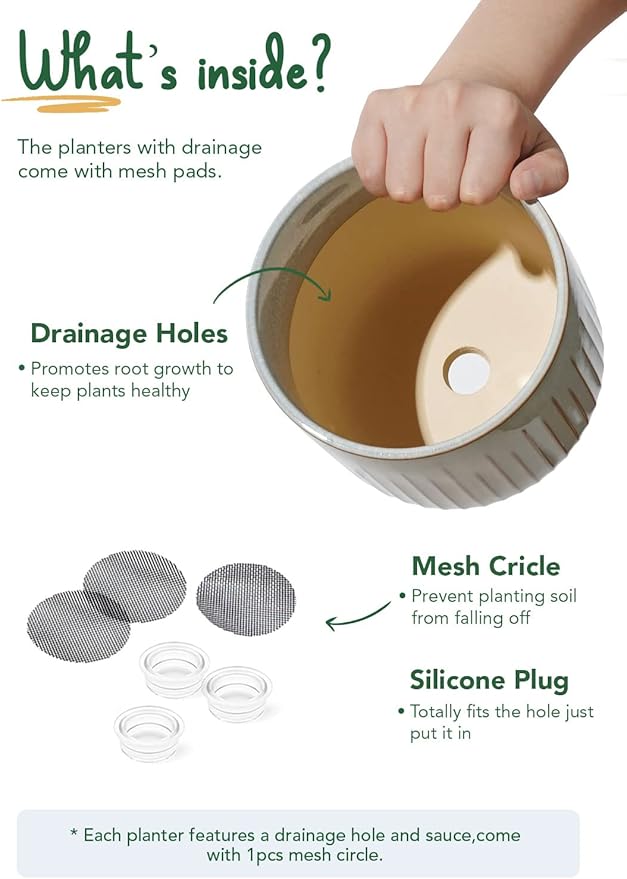 - Silicone Plug, Drainage Hole & Net: Give your plants the best of both worlds with flexible draining options; Choose to use the silicone plug for moisture control or the mesh pad to prevent soil loss and promote proper ventilation