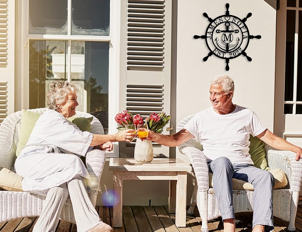 Personalized Ship Wheel Metal Sign, Customized Nautical Wall Decor, Anchor Compass Metal Sign, Family Name Sign, Monogram Wall Decor, Last Name Signs for Home, Housewarming Gift