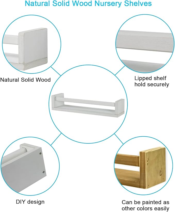 - EASY TO INSTALL: Nursery floating shelves are very easy to install on your wall, we take DIY as part of the creative design of floating shelves. Everything you need to install the shelves is included in the package along with an easy to follow instruction manual.