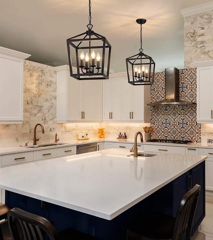 - Easy to Assembly:The kitchen table lantern hanging light is easy to install,this black farmhouse chandelier with adjustable chain,you can adjust the length of the chain according to the height you want also with detailed installtion instructions.It can be install for a sloped,flat,vaulted ceilings.