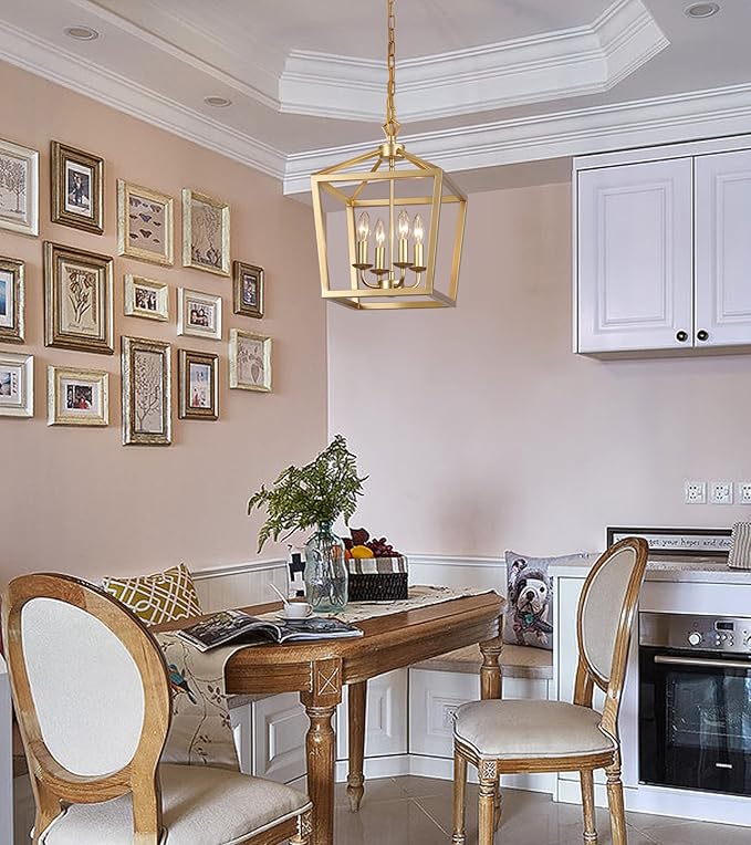 - Easy to Assembly:The gold kitchen lantern pendant light is easy to install,this modern chandelier with adjustable chain,you can adjust the length of the chain according to the height you want,also with detailed installtion instruction manual.It can be install for a sloped,flat,vaulted ceilings.