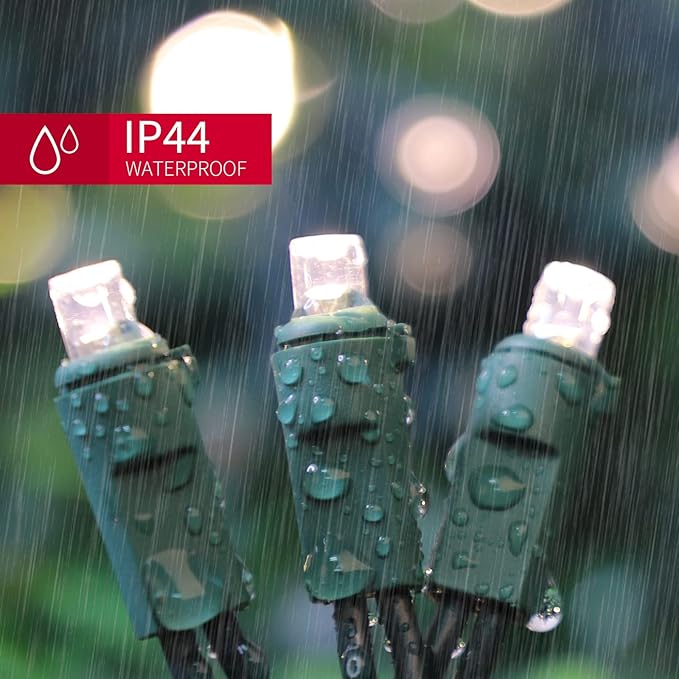 - High quality: Commercial grade 22 gauge wire with a pure copper core, wrapped in rubber that is infused with fire resistant materials, for longer runs and extended life. These 5mm feature a concave lens design that disperses uniform light in all directions for amazing color. You never have to worry about the string lights being buried in the bush.