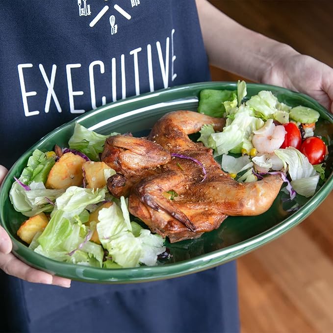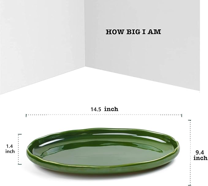 vicrays Ceramic Serving Platter Tray - Extra Large Oval 14.5 Inch Porcelain Dinner Plates Long Serving Dish Set - for Party Restaurant Food Meat Sushi Fish Turkey Platter - Green