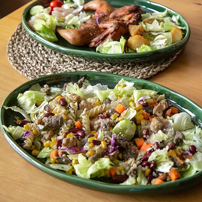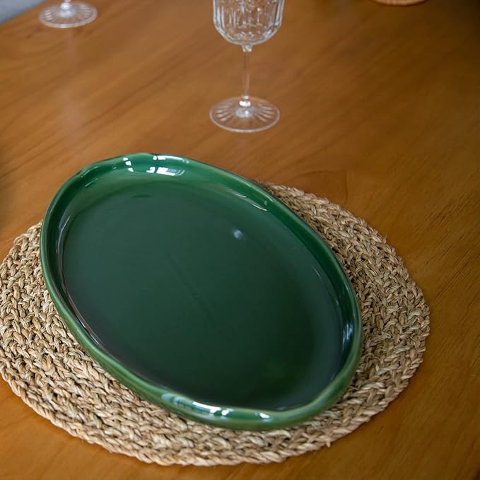 - UNIQUE NATURAL GLAZED: The glazed ceramic serving platter are durable, LEAD-FREE and Eco-friendly, ideal in the kitchen for everyday use, easy to clean with dishwasher or even hand wash with soap and water