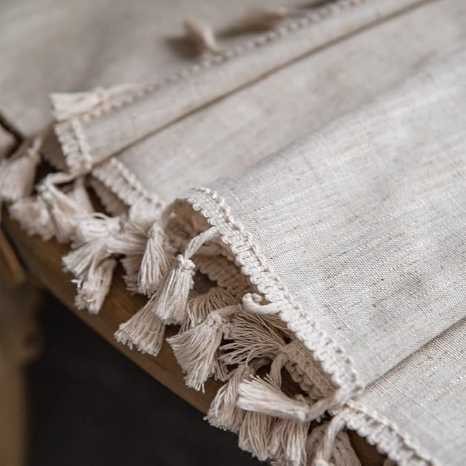Sutuo Home Boho Curtain 96 Inches Long for Bedroom, Natural Linen Look Textured Burlap Rod Pocket Chic Semi Blackout Bohemian Handmade Tassels Window Treatment for Living Room, 1 Panel 59" W x 96" L