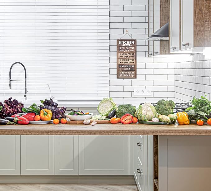 Hanging Kitchen Rules Wood Decor Sign, Rustic Kitchen Wooden Signs, Printed Wood Wall Art Sign, Kitchen Door Rules Rustic Sign, Hanging Wood Sign Kitchen Decor, Funny Farmhouse Kitchen Wall Décor