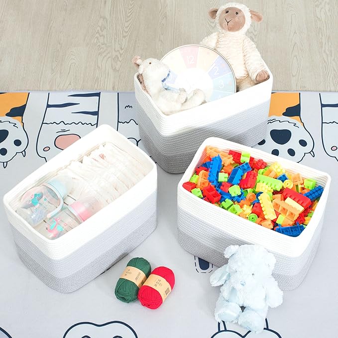 - Handcrafted & No Sharp Edges - Handmade from premium materials, our baskets are soft to the touch, yet sturdy enough to hold its shape. The workmanship ensures there are no sharp or hard edges to scratch furniture. Use them with complete peace of mind in recreation room, playroom, pet room, living room, bedroom, nursery room, bathroom, laundry room, mudroom, pantry, arts & crafts room, home office or even garage.