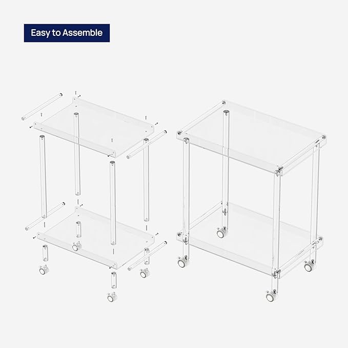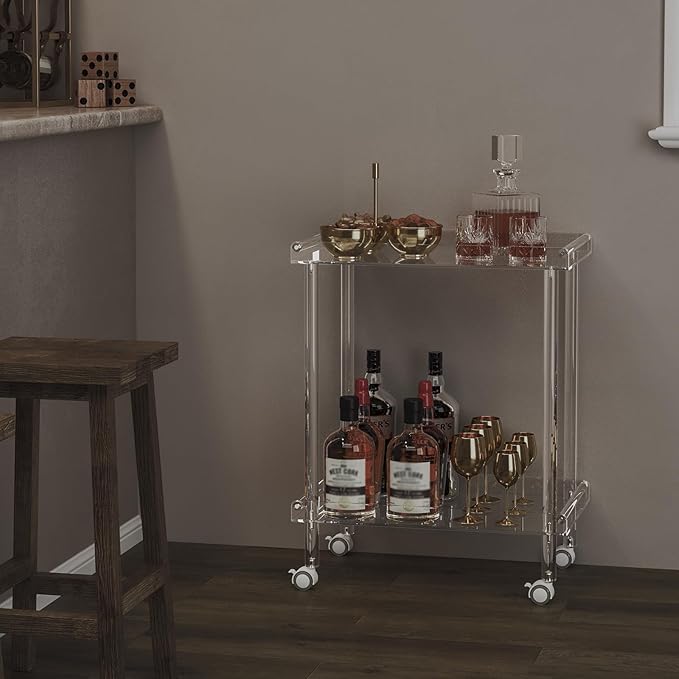 - Multifunctional Acrylic Cart: Used as a rolling serving cart to store ice buckets, shot glasses, drink trays, fruits and snacks, cakes, seasoning bottles, liquor, and more. Also suitable as a decorative table for your living room, bathroom, bar, kitchen, restaurant, or foyer.