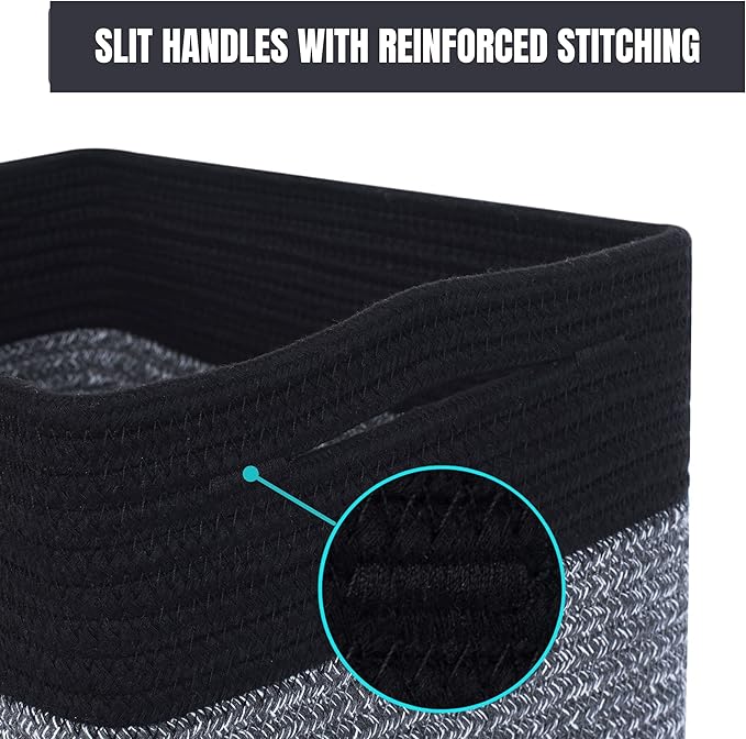 MINTWOOD Design 3-Pack Storage Baskets for Shelves, Playroom and Classroom Storage Basket, Book Basket, Decorative Storage Cube Bins, Woven Closet Organizers, Pantry and Shoe Organizer, Black Grey Mix