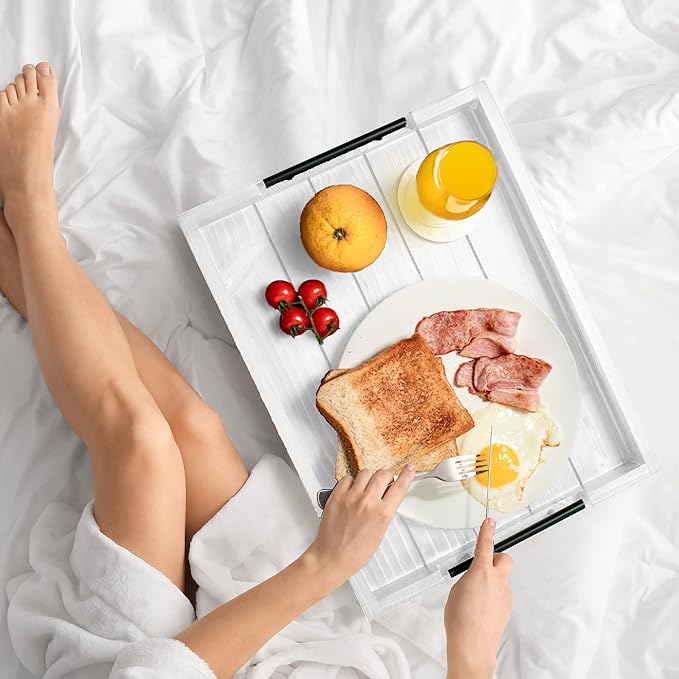 - MULTIPURPOSE SERVING TRAY – Use this versatile large wood serving tray in the comfort of your bedroom, study, or Couch Tray or Farmhouse tray or anywhere you like to enjoy a nice meal! Our kitchen wooden serving tray can also be used as a kitchen organizer to hold cutlery or other items, as a remote tray, a laptop tray for bed while working from home, or as a coffee tray for coffee bar