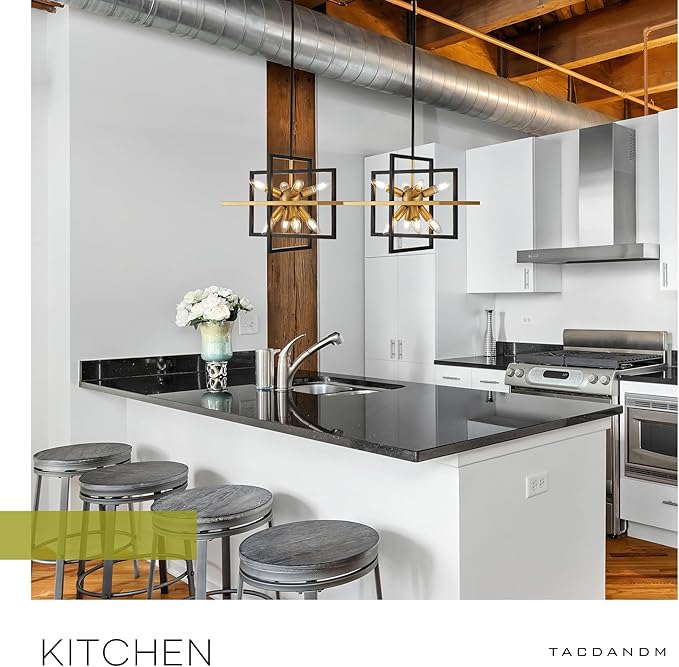 - 【Durable for Use & Easy to Install 】Made of high-quality metal and painted with spray paint, Kitchen Light Fixtures is sturdy and durable and prevents rusting, corroding, or fading. This Black and Gold Chandelier requires assembly, detailed installation instructions in the package will guide you on how to complete a quick installation!