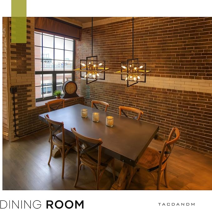 - 【Geometric Design】8-light Lantern Pendant Light is a perfect combination of geometric and modern design. Embedded in a rectangle industrial-style cage, the Rectangular Chandelier creates a starburst and modern art sense. Ideal for living room, kitchen island, dining room, hallway, stairway, entryway, café & restaurant.