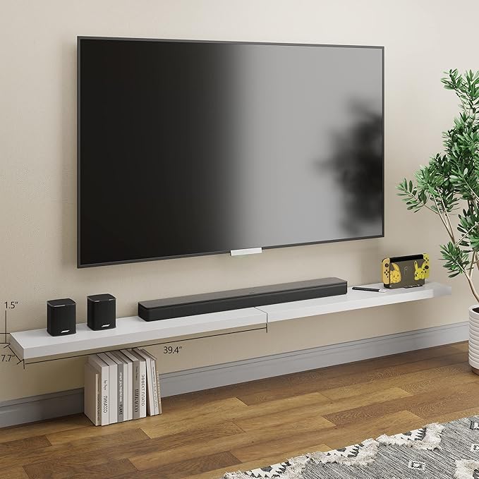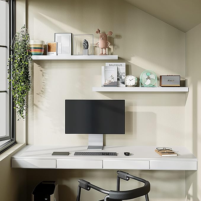 - 40 INCHES FREE UP SPACE: The Bameos White Wall Shelf will maximize space without taking up any square feet - each board measures 39.4” L x 7.7” W x 1.5” H; Reduce clutter and highlight decor in a compact space - giving the illusion of more space in your studio apartment, dorm room or small living area and so on