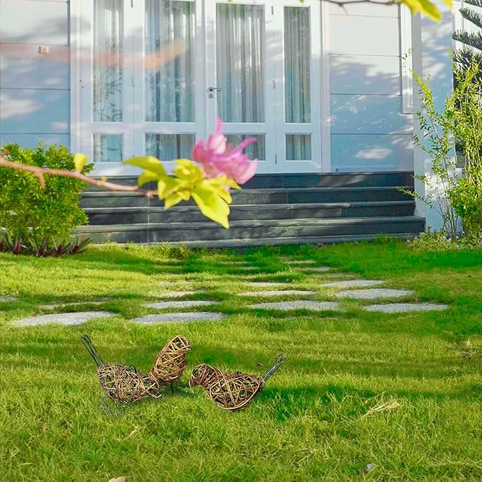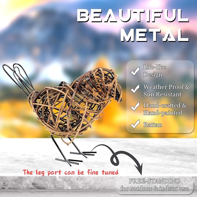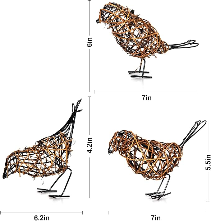 Natural Farmhouse Decor Set of 3 - Handwoven Rattan Bird Statue Table Decor, Multi-Pose Shelf & Mantel Accents
