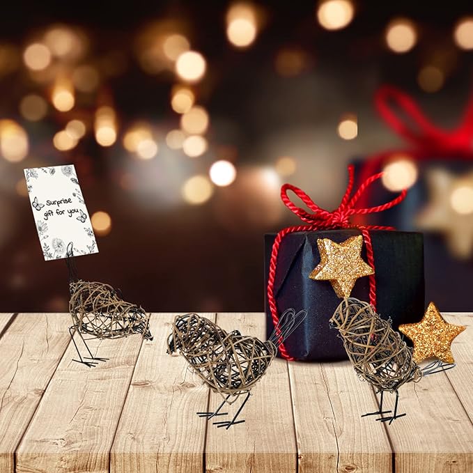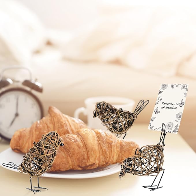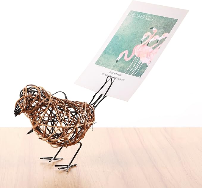 - [Dual-Function Design] ✓ Memo Clip Capacity: Holds 5 standard index cards or 3 photos (4x6") ✓ Hidden Design: cleverly hiding the memo clip on the tail of the bird ✓ Adjustable base: can fine tune the legs of birds to maintain stability on uneven surfaces