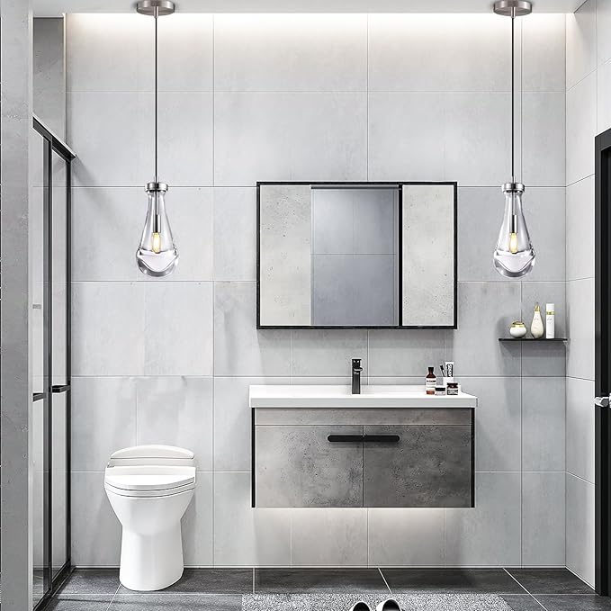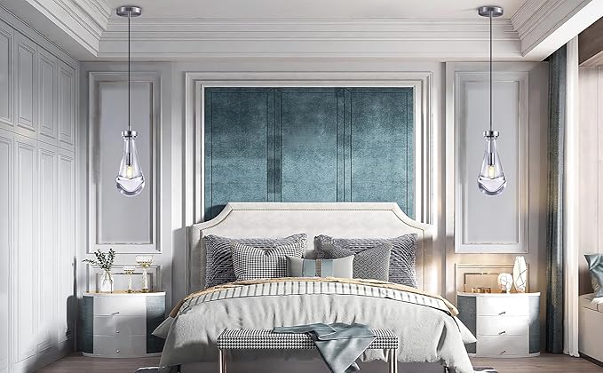 - 【Easy Installation】Morden glass pendant lights include 2 LED bulb with E12 base, all hardware needed for installation is included in the package, you just need to connect the wires and fix the base to the ceiling, place the teardrop glass shade, and the bulb. When cleaning, please take care to wipe with a soft dry cloth to prevent damage to the surface.
