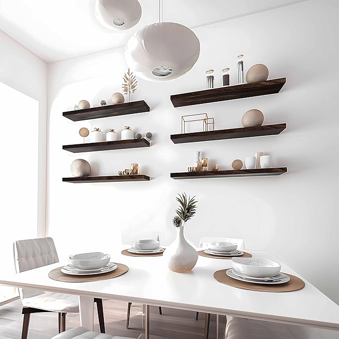 - Package Included - 4 floating shelf boards - 23.6 X 6 X 1 inch, 8 brackets, directions, wall anchors and screws.
