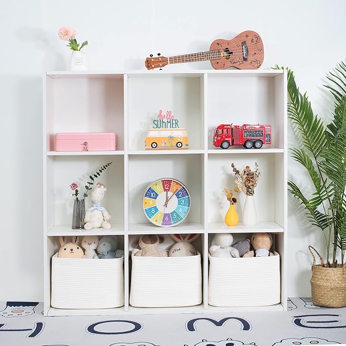 MINTWOOD Design 3-Pack Decorative Woven Storage Baskets for Shelves, Cube Bin Box for Organizing Books, Shoes, Dog Toys, Pantry Closet and Living Room Organizer, Creamy White