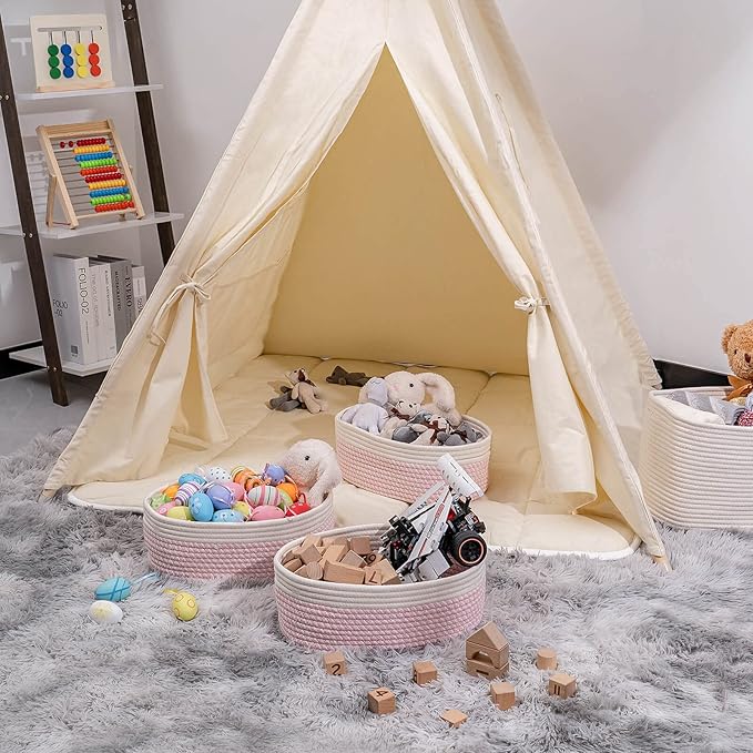 Off White&Mixed Pink Shelf Basket to Store and Organize Household Items/Baskets&Bins for Daily Storage &Organizing/Woven Rope Basket for Bedroom,Playroom/Small Oval-13x8.66x5.11’’,3 Packs