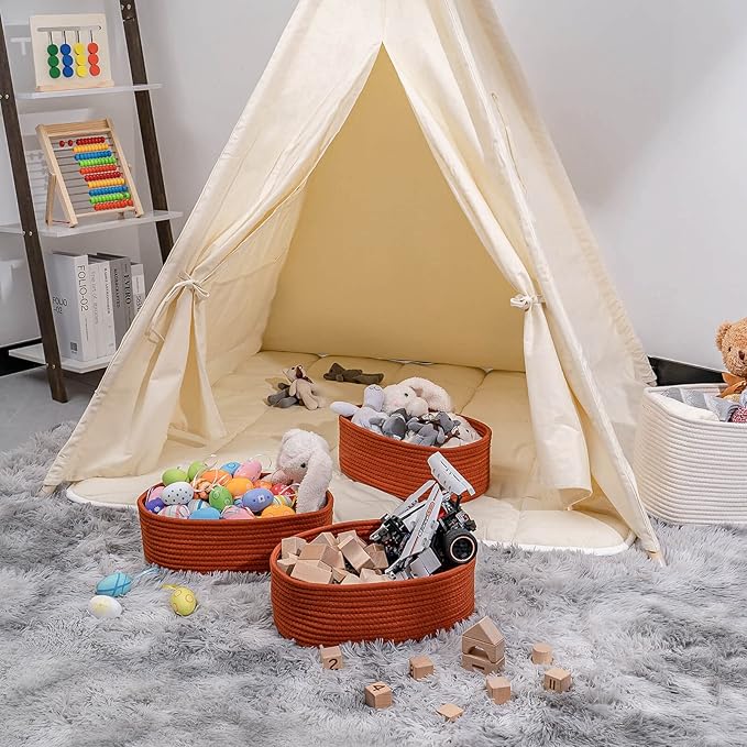Shelf Storage Baskets for Organizing|Decorative Basket for Closet Storage|Toy Baskets&Bins|Small Woven Rope Baskets-13x8.66x5.11’’,Durable&Stylish,Oval 3 Packs Brick Red