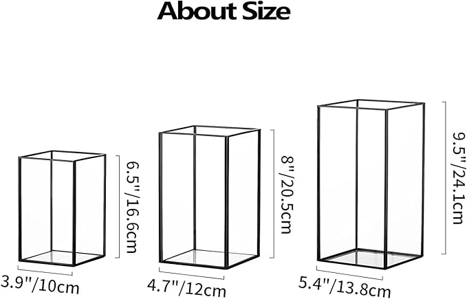 - 3 Different Sizes -- The square candle holders are 3 different sizes, which is so much more interesting to look at. They can meet your different needs. It can not only hold pillar candles, electronic candles or tea light candles, etc., but also some dried flowers, colored stones, fairy lights, makeup brushes or pencils.