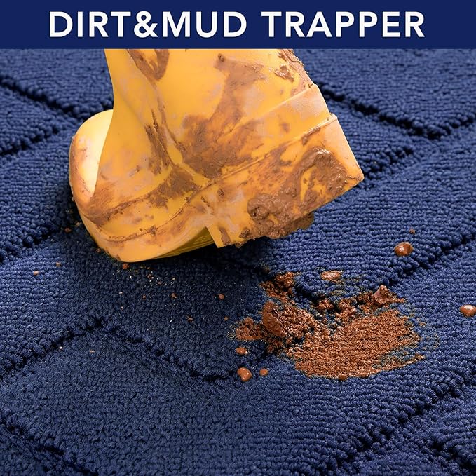 hicorfe Front Door Mat Outside Entrance,32"x40" Absorbent Muddy Dirt Resist Welcome Door Mats Outdoor Indoor,Stain and Fade Resistant,Non Slip Backing Entry Mat Doormat for Entryway(Navy Blue)