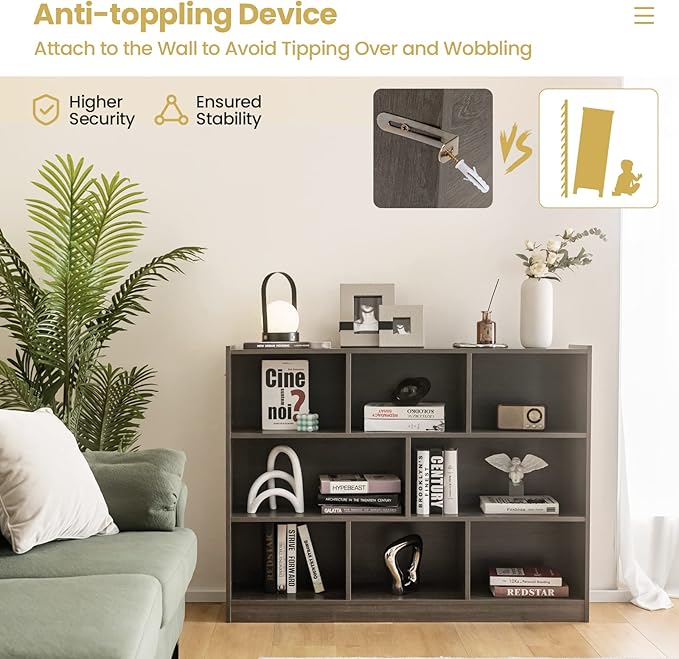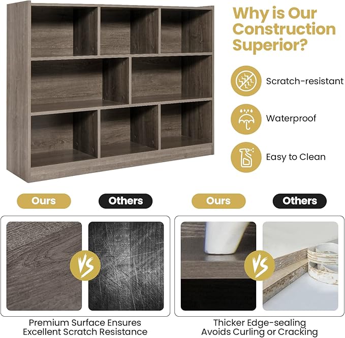 Tangkula 8-Cube Bookcase, Wood 3 Tier Open Storage Bookshelf, Modern Multipurpose Display Cabinet for Living Room, Study, Reading Nook, 48 x 12.5 x 36.5 Inch, Grey