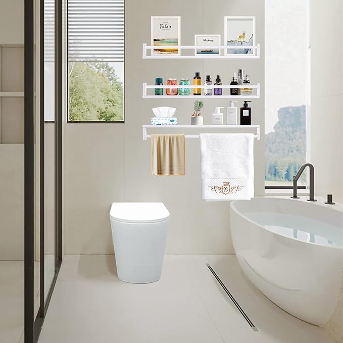 AZSKY Classic Nursery Book Shelves White Wall Book Shelves Kids Bookshelf for Bedroom Bathroom Décor Wall Ledge Shelves 36 in Hanging Shelves a Set of 3
