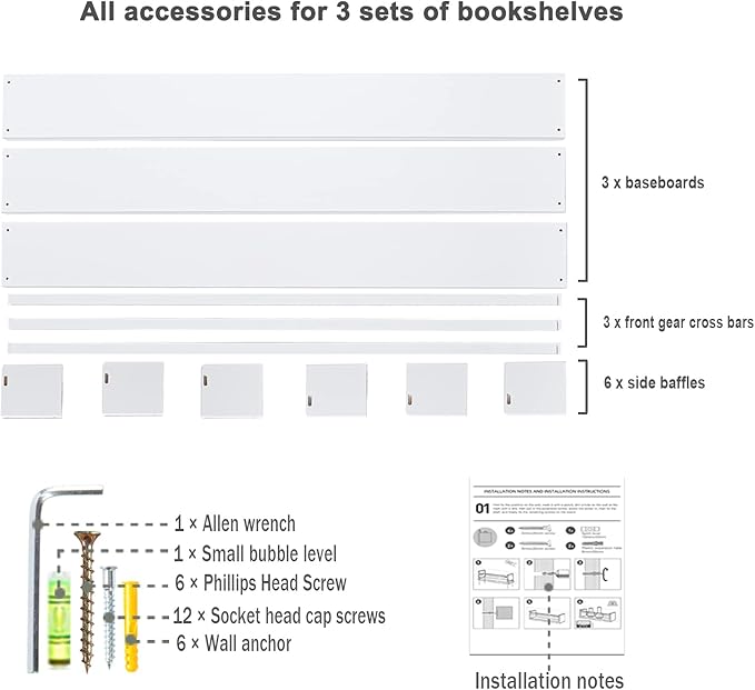 - Easy to Install: This set of floating wall bookshelves is easy to install, with the included installation instructions and hardware needed for installation, you just need to follow the instructions to fix the children's bookshelf on the wall. This set of children's storage and organizing shelves is also easy to clean, just wipe with a wet rag and then dry with a dry rag.