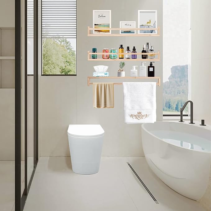 - Space-Saving Wall Shelves: Floating shelves are practical and fixed to the wall will take up less floor space while increasing storage space. You can put it in your child's bedroom as a space-saving bookshelf, or use it as a spice rack or condiment rack in the kitchen. You can also put it in the bathroom to store toiletries.