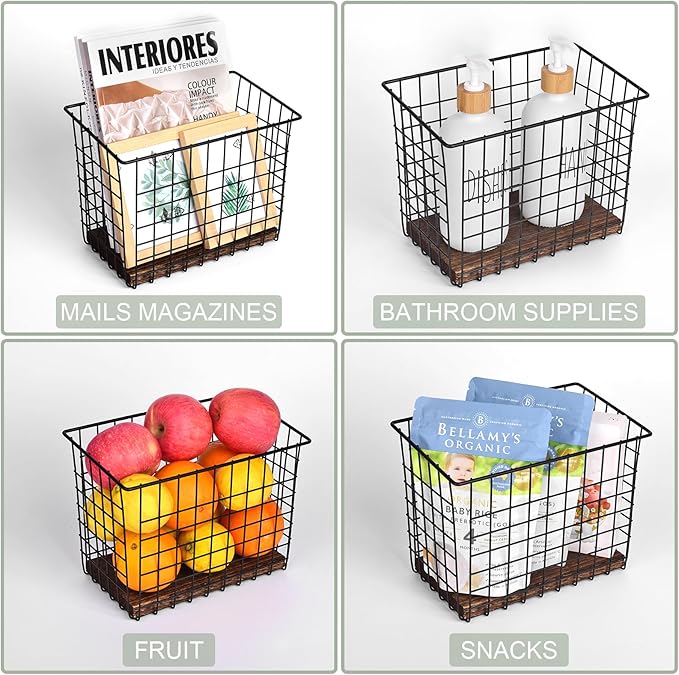 - Aesthetics Organizer - Each basket paired with a removable wood slat can hold many items without collapsing or sagging. The wooden slat bottom adds a visually appealing and rustic element to the basket, making it more attractive for use as a decorative piece around your room or office.