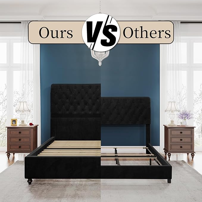 - Material Wood&metal&velvet : Style Queen Size Bed Frame with Extra Large Headboard