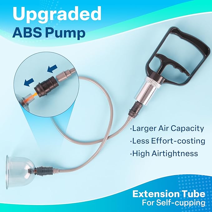 - Features: 23.6-inch extension tube for self-application, durable ABS plastic hand pump, and 12 removable bio-magnetic points for enhanced magnetic cupping therapy. The special U-shaped joint cup is designed for better adaptation to elbows and knees, ensuring better contact and stability