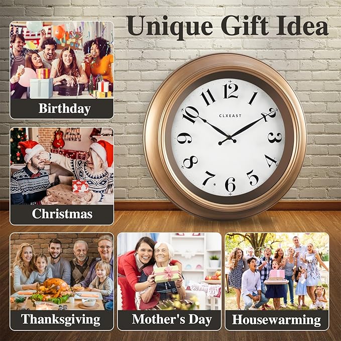 - [Indoor/Outdoor Wall Clock with Smart AI Light Sensor]-This unique 18" large ABS plastic wall clock is with integrated light sensor that automatically activates a warm, ambient full dial backlight during dark conditions,shuts off in normal daylight.An elegant timepiece for your living room home decor or outdoor garden,pool, patio,porch or backyard under covered area only, make sure the wall clock is away from exposed elements like heat, cold and rain.