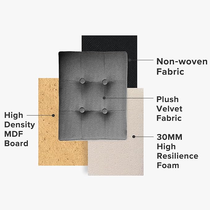 - PURE DESIGN – Our button are integrated with the lid in a seamless manner. Clean and tidy look, but most importantly, sturdy and functional. Crafted with high quality MDF board, high-density sponge make the stool more comfortable and breathable.they make for a lovely and practical gift to friends and family for birthdays, housewarmings, or any other gift-giving occasion