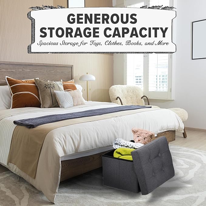 - DECORATIVE MULTI-PURPOSE LINEN STORAGE OTTOMAN – Our linen fabric storage ottoman are a stylish, practical alternative to other boring storage solutions. Not only will our ottoman help you get organized, the pure design, sophisticated shape, and neutral colors will complement any decor in any room for all your storage needs. Use them in the playroom, bedroom, living room, & more