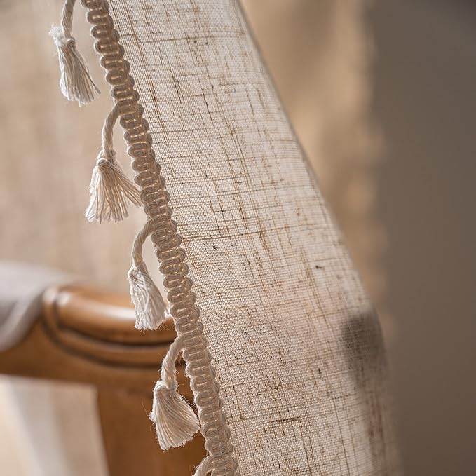 - 【Ready Made Curtain】Each package contains 1 panel bohemian curtain. The boho curtain is made of high-grade 90% linen hemp blended 10% cotton fabric, each panel size measures width 59" by length 84". Top rod pocket design fits up to 3’’ curtain rod for hanging.
