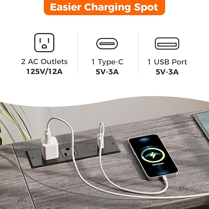 - [Welcome Power Outlets]: Invite this console table with storage to facilitate your charging time. 2 outlets, 1 USB Port and 1 Type-C port are totally enough for your charging needs. Lamps, phones, iPad, fans, and even decorative light strings are all covered