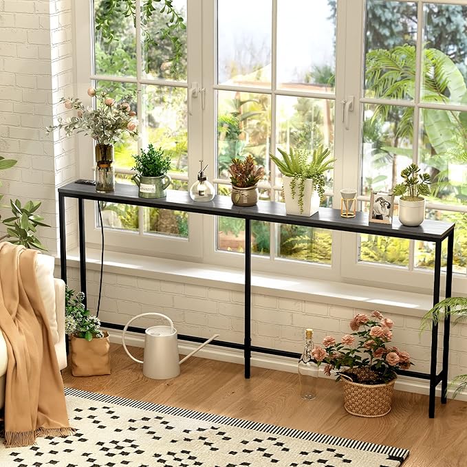 - [Functions Can Be More]: Thought this long console table could only be a narrow sofa table to place plants, scented candles? Used as a long entryway table to welcome keys, hats, and sundries or a plant table for your greeney, all will be nice