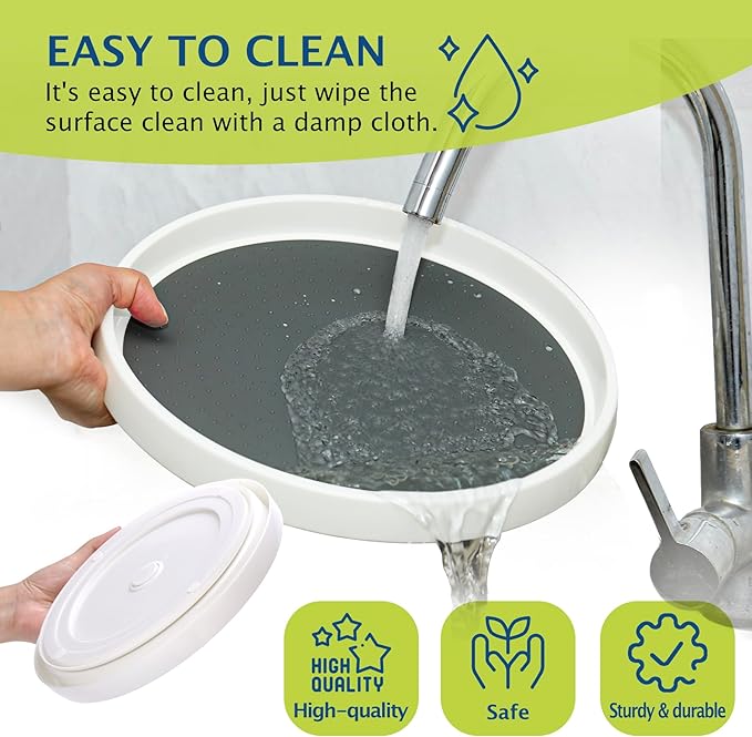 - Non-skid Design: Beaded non-skid surface and 4 silicone anti-slip base feet keeps items in place while rotating lazy susan turntable organization and storage. Never worry about your items falling off.