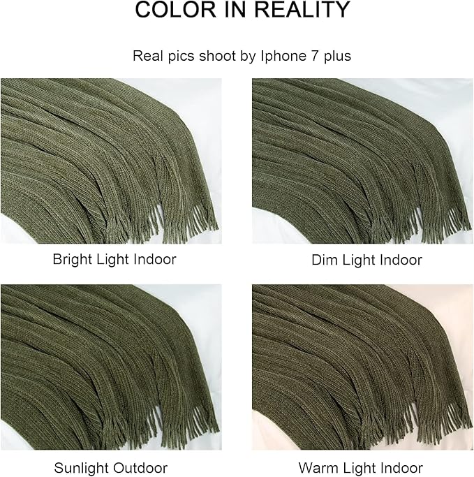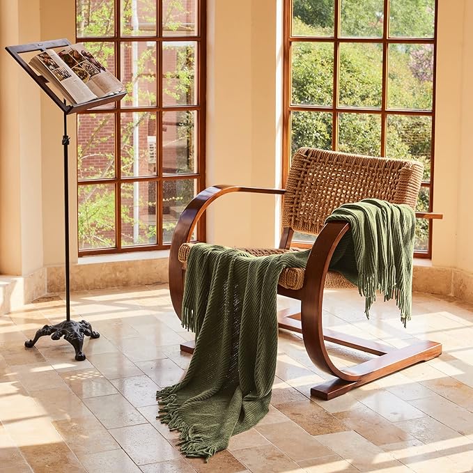 lifein Throw Blanket for Couch, Soft Green Boho Decor Bed Throw,Cozy Knitted Chenille Farmhouse Lightweight Throw for Spring(Olive Green,60 * 80")