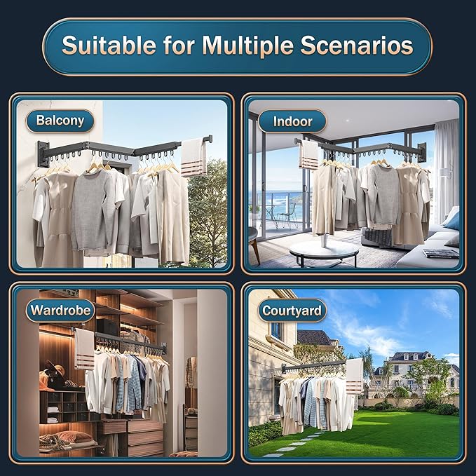 - 【Space Saving】This wall mounted clothes drying rack allows you to make full use of your space, unfold when you use it, and fold it against the wall when not in use. It does not take up your space at all. It is very flexible and convenient, especially Indoors, this clothes rack will be your first choice.
