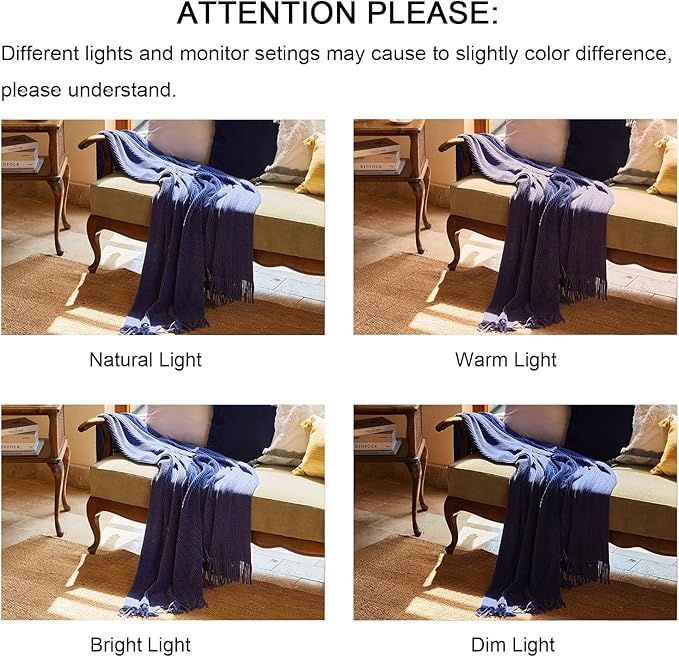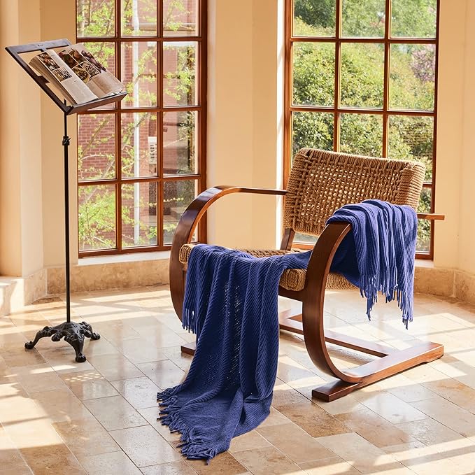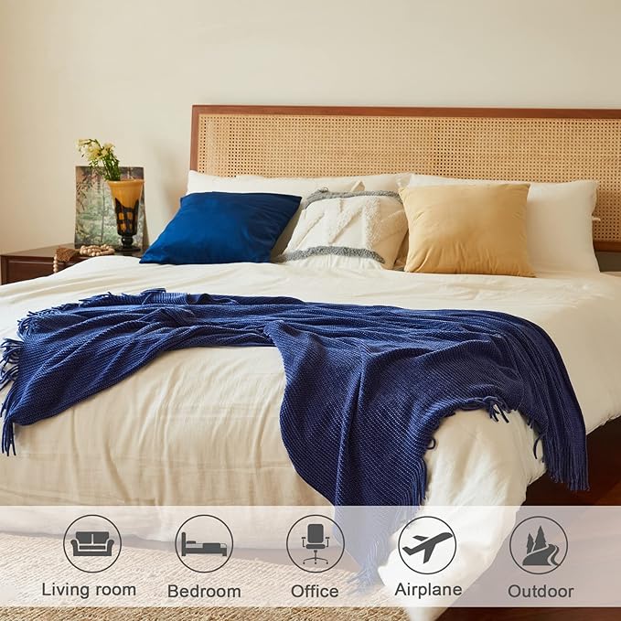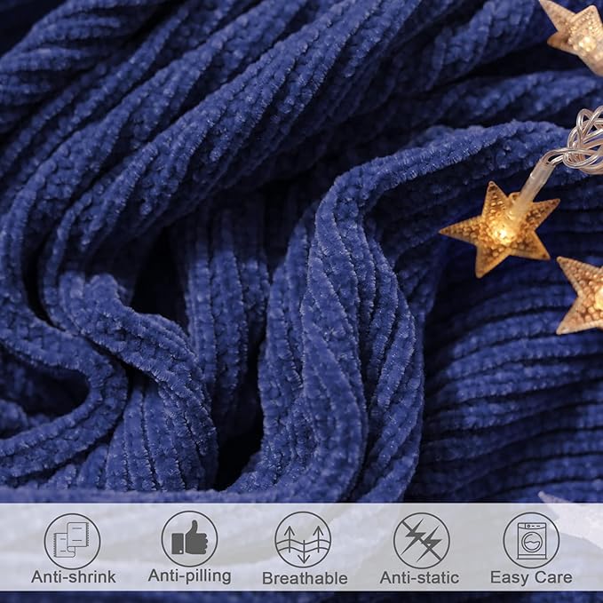 lifein Throw Blanket for Couch, Soft Boho Decor Bed Throw,Cozy Blue Chenille Knitted Small Farmhouse Lightweight Throw for Spring(Blue,50 * 60")
