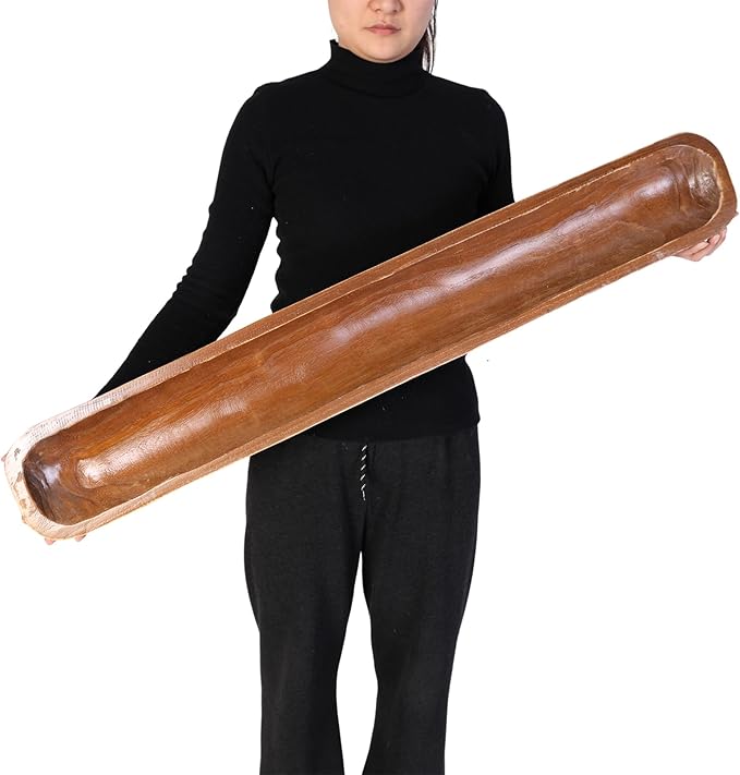 - 【SIZE】This is a long size decorative dough bowl, approximately 40*6*3 inches (L*W*H). A practical wooden dough bowl for decoration, not for direct contact with food. Each wooden dough bowl is unique, so no two bowls are the same.