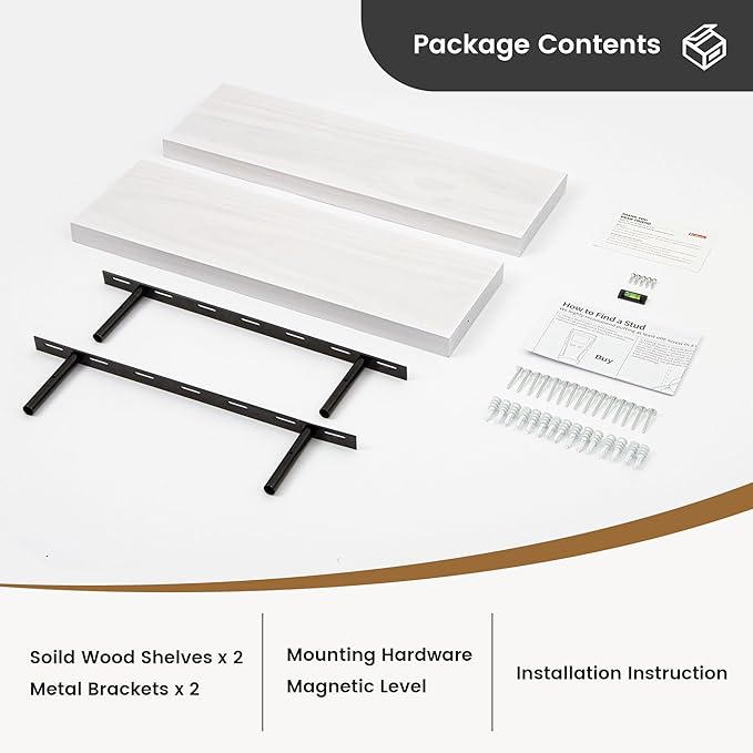 - Easy to Install - We provides everything you need for a hassle-free installation. Inside, you will find a level, screws for the wall, drywall anchors, screws to tighten the shelf, two metal brackets, and two exquisite handcrafted pine shelves. A detailed installation guide accompanies these components, ensuring a smooth process. Please contact us at Amazon or Fun Memories with any questions or concerns. Your satisfaction is important to us!