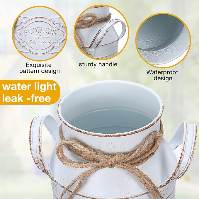 - Sturdy and Safe Material: metal rustic white vases for flowers are made of quality galvanized iron, which is safe and reliable, strong and sturdy, with a water resistant coating to prevent rust, not easy to break or deform, can be applied for a long time